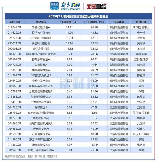图1:2025年11月净值涨幅靠前的部分主动职权基金